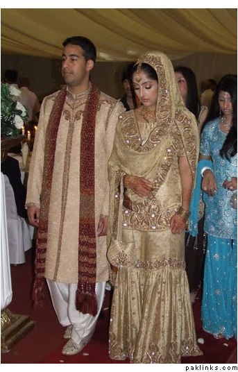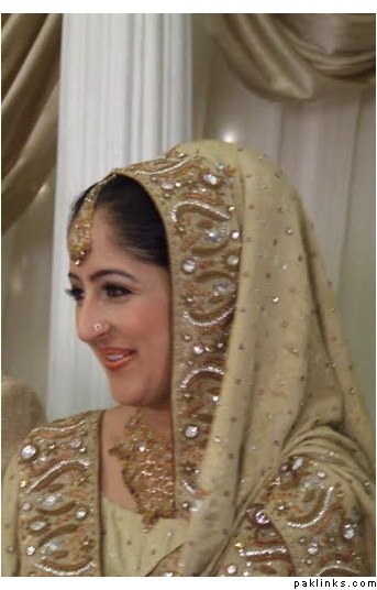 no way, I cant believe this is the same bride! her makeup looked so much better in the closeups....or I wonder if she just had a ceremony in Pakistan and one in the US, cause the makeup looks different here although its the same outfit, jewelery and hair...?