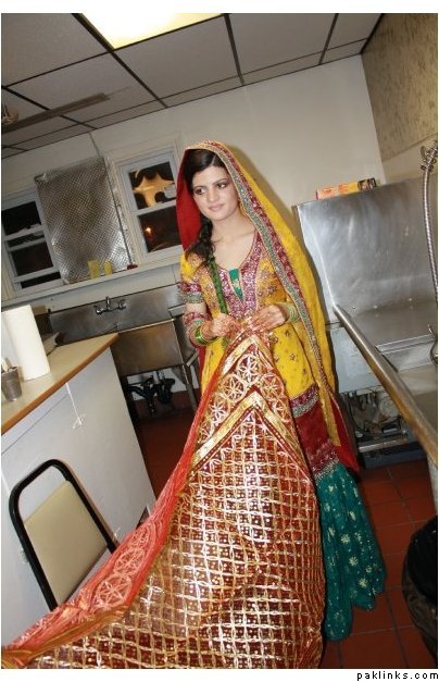 But that mayoun wala Yellow outfit, is all wrong! The shirt is too short for the girl, she seems tall and broad shoulders, and the Baraat Pink/beige. I don't think that's a bunto, its just not pretty. The small picture of her mehndi, that seems a little promising. But The Mayoun and Baraat outfits are not pretty. I feel awful saying this and she's a bride and I would feel bad if someone said my outfit wasn't pretty. I feel horrible, but I just can't help it, I wanna go pull her kameez down :( and I wanna fix her duppata on the baraat!