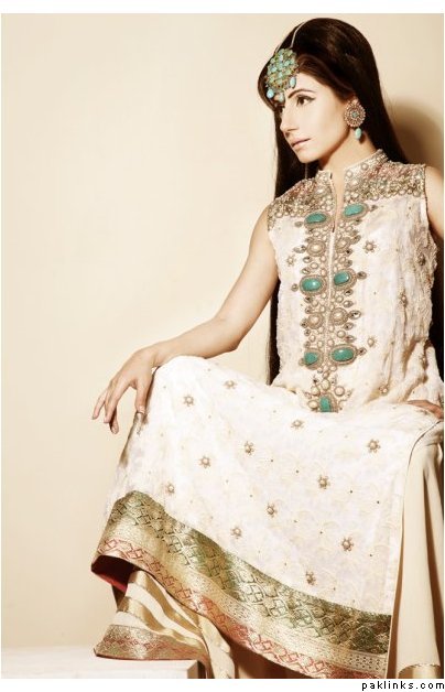 absolutely LOVE THE COLOR AND WORK! but i think its good for a walima not wedding… but i have seen a few brides wearing ivory and gold on wedding hmmm… what say?