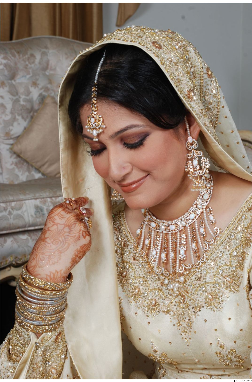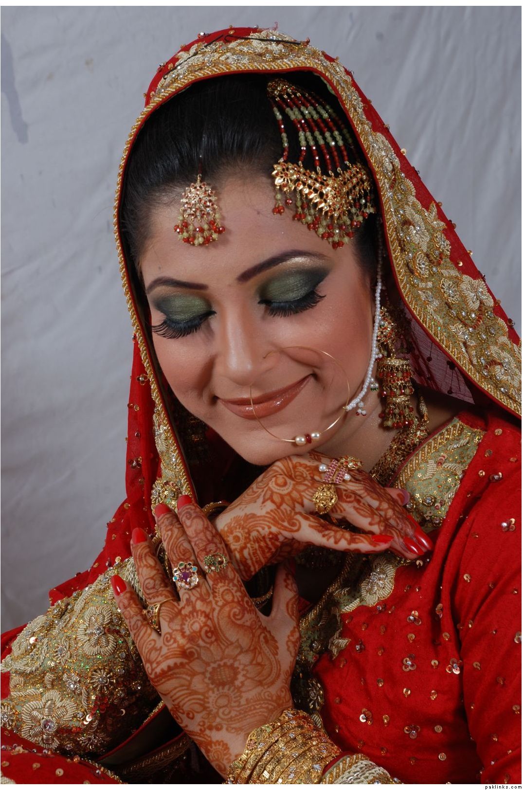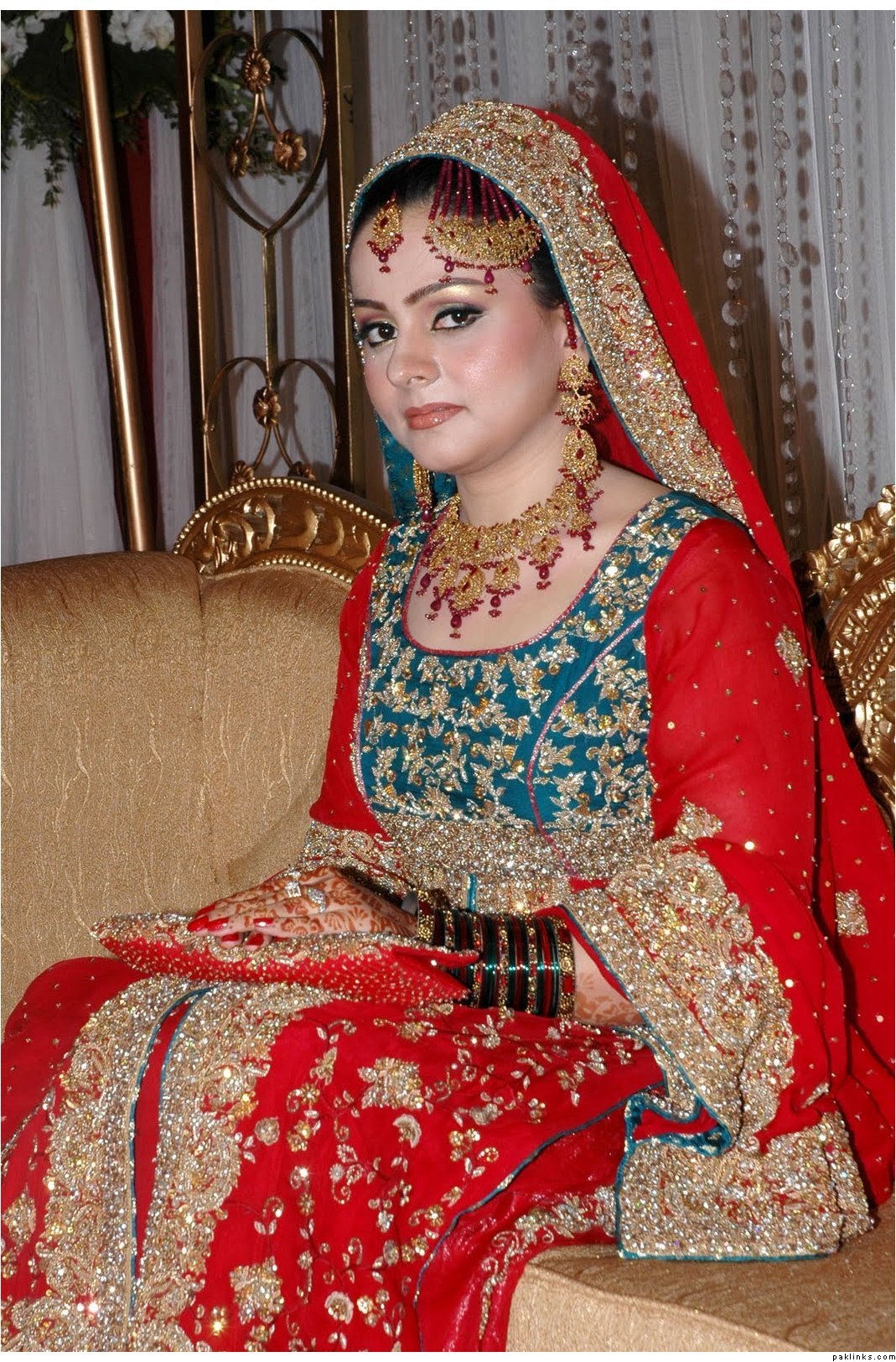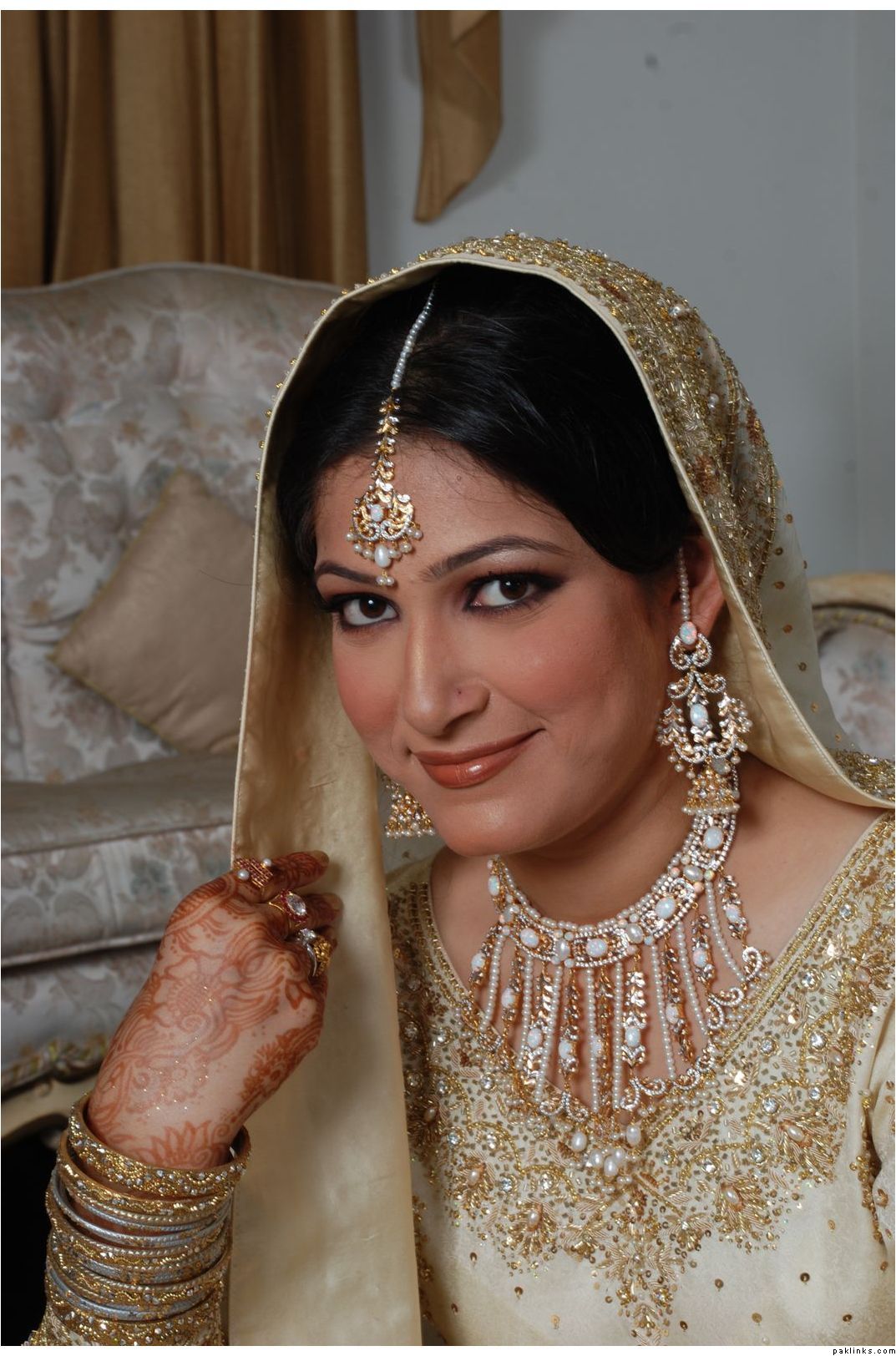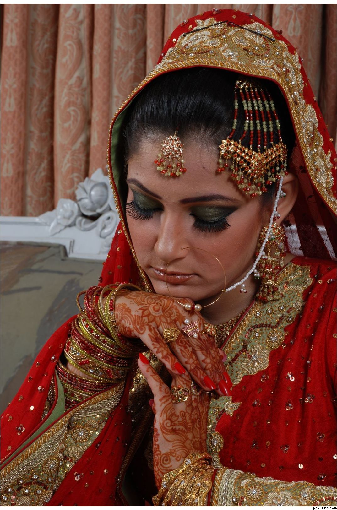 beautiful bride but she shouldnt have worn a jhoomar if she was going to hide it.lol.