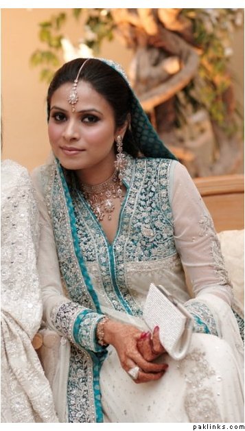 what a stunning bride mashAllah! experimental to go with white, but she looks regal!! wow! i dont like the wedding stage setting, but the joda is A- awesome!!! and its a bunto!