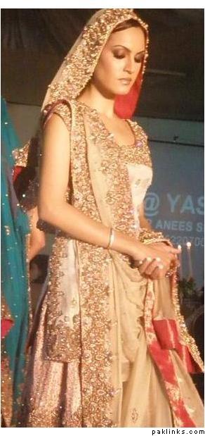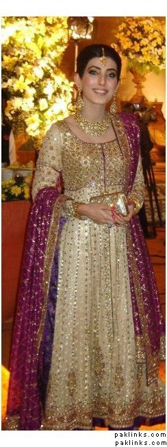 Third picture Ive seen of this girl in a formal; the first being the red Bunto swarovski floral, second in white/purple Bunto kaamdaani pishwaaz–she has amazing taste! I wonder what her own bridal jora was like…