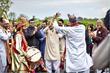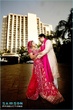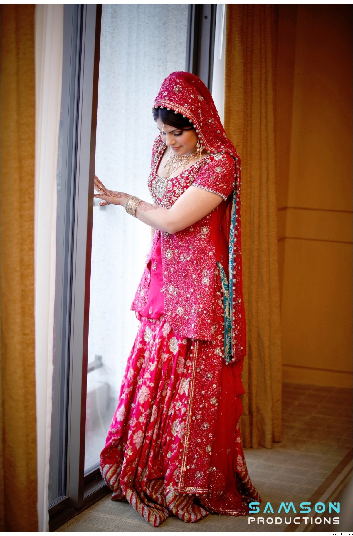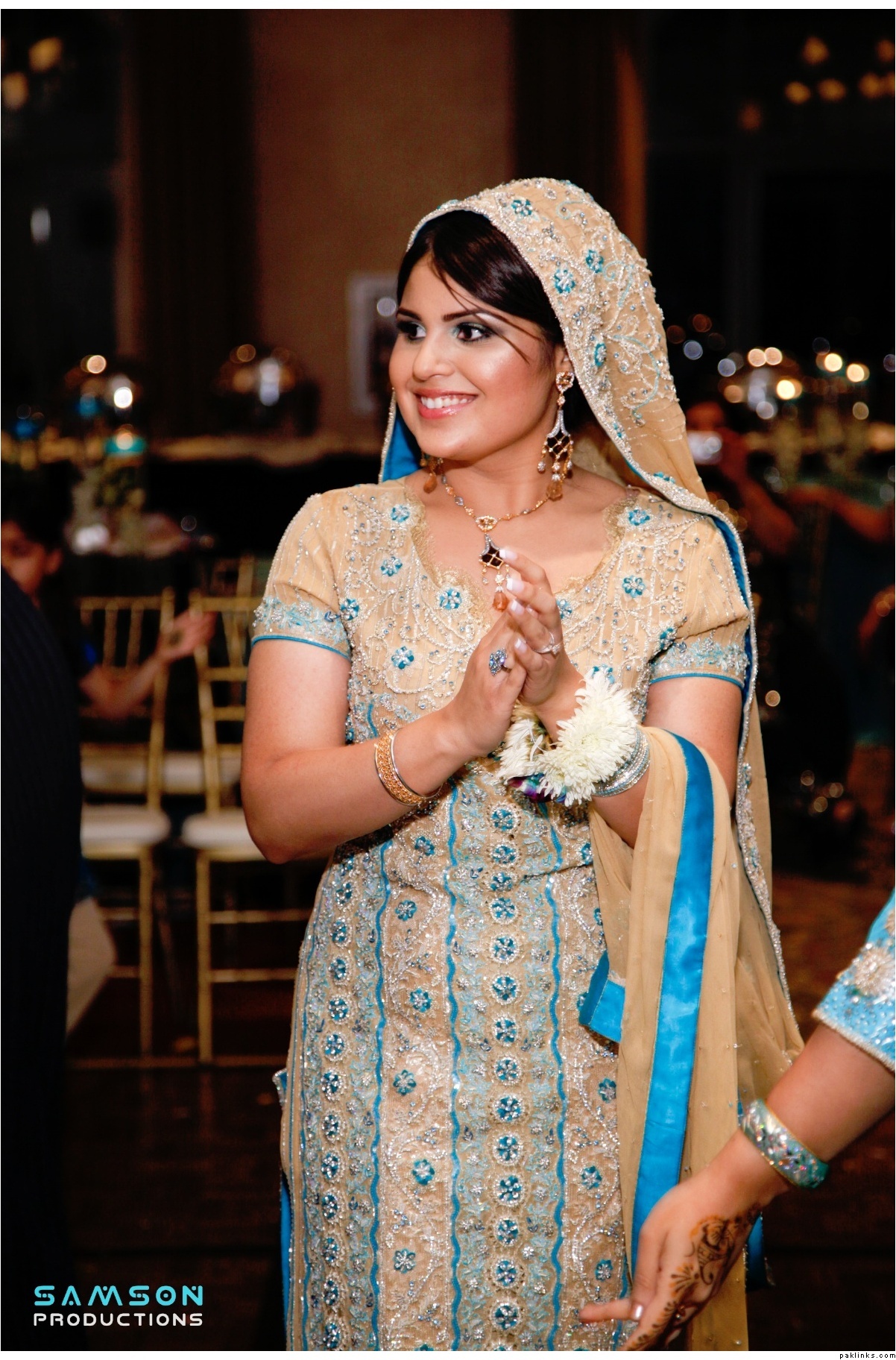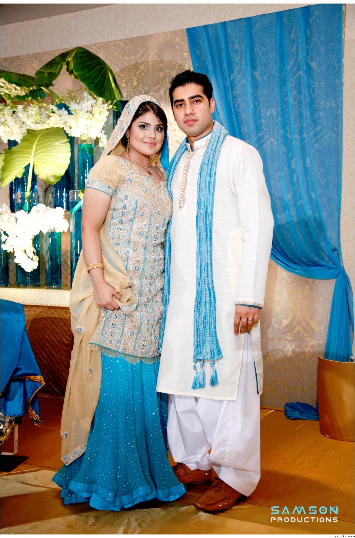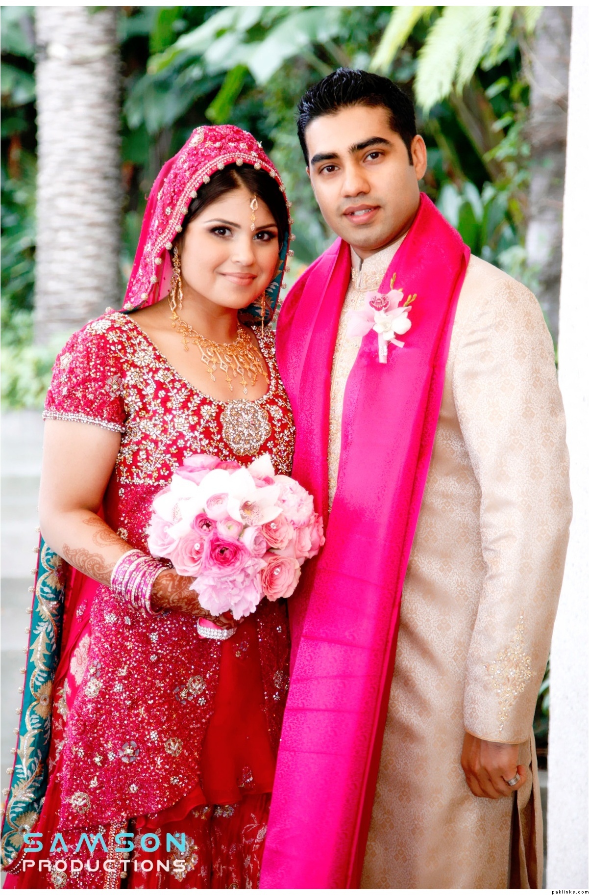 oh wow, this is a sari?? it looks beautiful on her as a sari dress! i’m usually not a fan of saris as bridal gowns but this looks stunning! i thought it was a lehnga.
