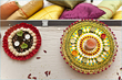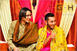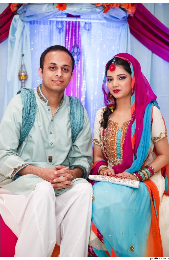 ^ I was told by Bunto it's teal sari with a (pale) lavender blouse...