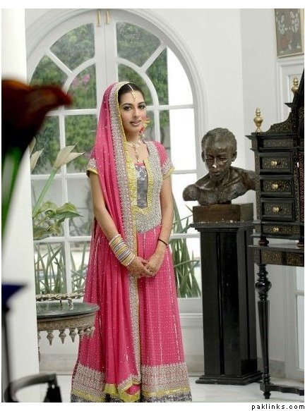 wow…beautiful bride, beautiful jora and beautiful jewelery. I’ve never seen this style of gharara made in one color and fabric before, its such a pretty color too!