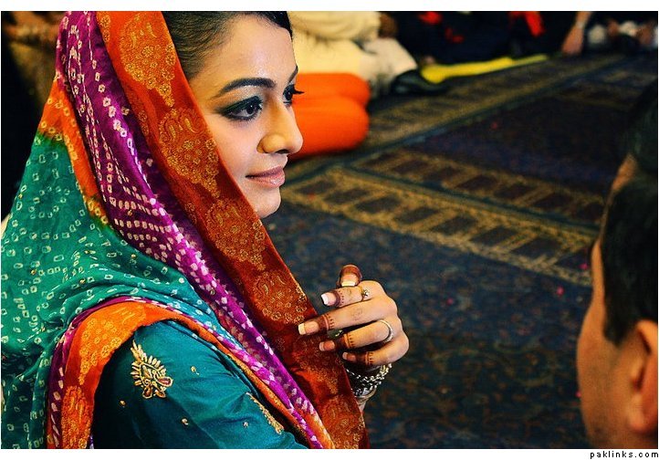 ^ really nice dress and colour for valima, looks fresh, change from the big kaliyoon wali booris pretty much every bride has been wearning nowadays, theek hai fashion hota hai, but in pak. nowadays all brides are so nauseatinly similar.
