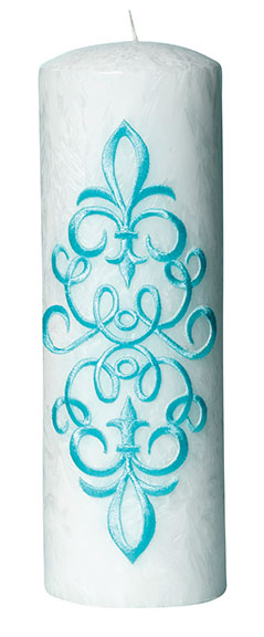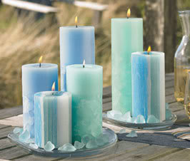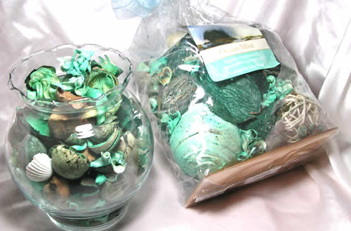 For the decor, incorporate aqua colored candles and potpourri in clear glass holders.