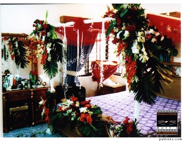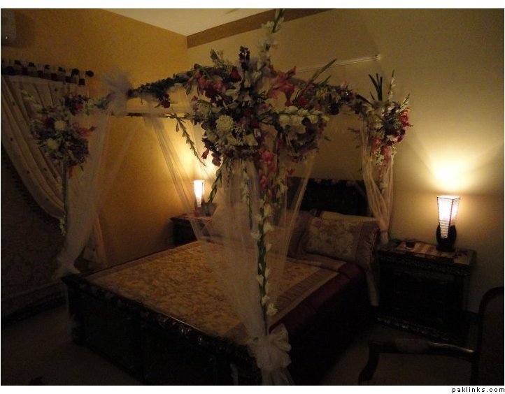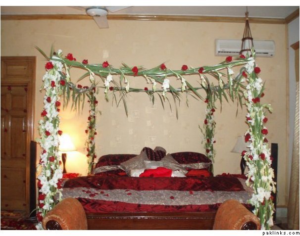 Hiii guys I'm new on this forum....this is my first post....well I'm getting married in the summer .. I need some pix of the wedding day bedroom decoration....DULHA nd DULHAN k bedroom ki ....I searched alot but I couldn't find anything...mujhe ideas chahiye apni shaadi k liye....Mujhe achi achi pix chahiye.....jahan room mein flowers wagaira ho etc....if u guys can..can u plZz upload some of the latest pix...I wanna see ke Pakistan mein aaj kal bridal bedroom ki kaisi decoration horahi hai for their first night....thnx alot