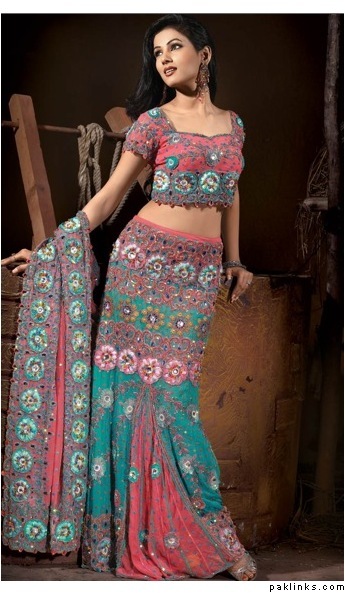 The colors play a great role as well.. if u're top is light and the bottom is slightly darker it elongates the body (illusion).. just don't drown urselves in too much fabric and kaam.. the lehnga shud also be semi-fitted, avoid gharara's!