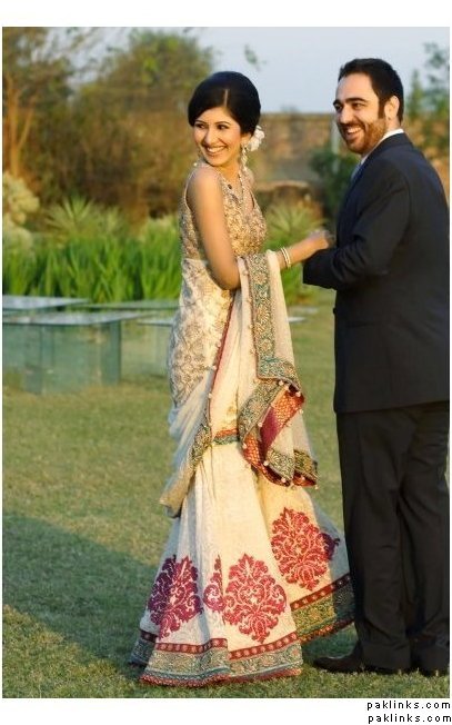 so she asked me to help out and i designed her a gharara in beige and baby pink...the dupatta and shirt were baby pink and the gharara was beige...she had it made in pakistan and it looked gorgeous on her.