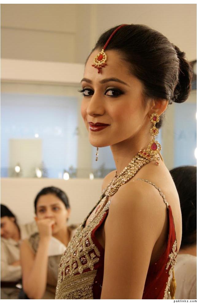 no idea who the designer is, though. makeup is by bina khan. bride is gorgeous!