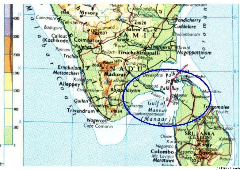 The bridge, which was discovered only recently, was named as Adam’s Bridge. It is made of a chain of shoals, 30 km long, in the Palk Straits between India and Sri Lanka.