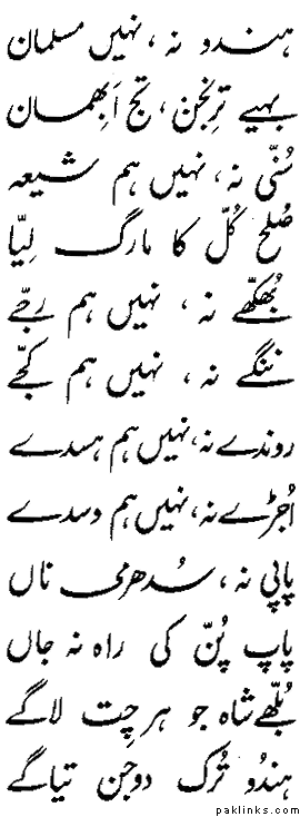 Again he speaks another evil of the society, the caste system. If You watch famous and controversial new Pakistani movie “Khuda ke leye” there is a Bulhey Shah’s Kalam sung in a very catchy tune.