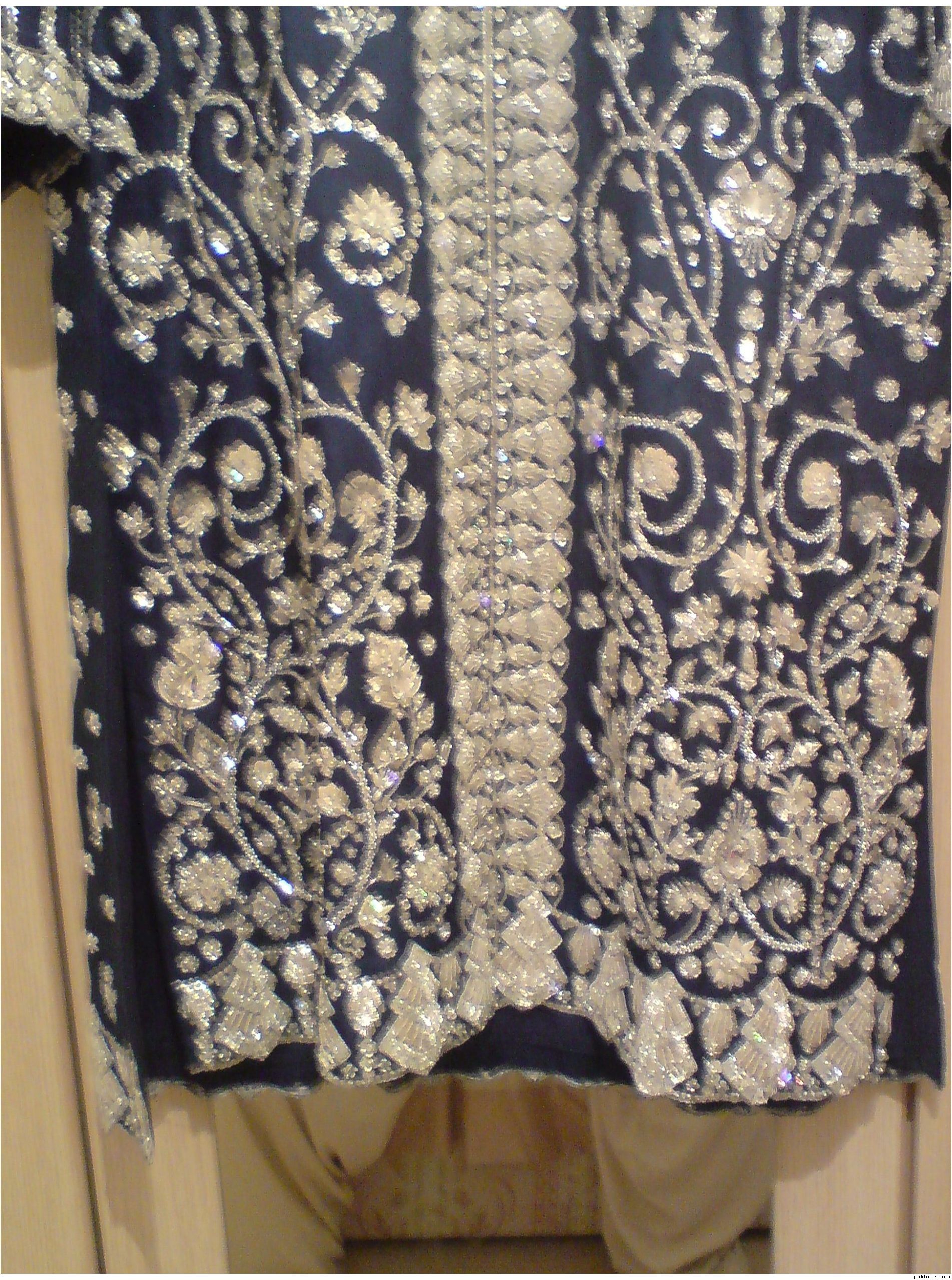 We just picked up an outfit by Bunto Kazmi with Swarovski work - its essentially the use of crystals which are made by a company called Swarovski specifically. Some designers use crystals quite a lot but Bunto claimed that she used Swarovski crystals specifically in all her outfits because the quality was much better. Having seen the oufit now for myself, I believe her because it shines and shimmers quite alot: