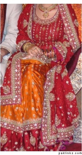 not sure what the bottom of it looks..but emm…i am not digging the rest…especially the chatta patti/mulit-colored bottom.. imo that particular style works great for mehndis… but hmm not the formal bridal dress…