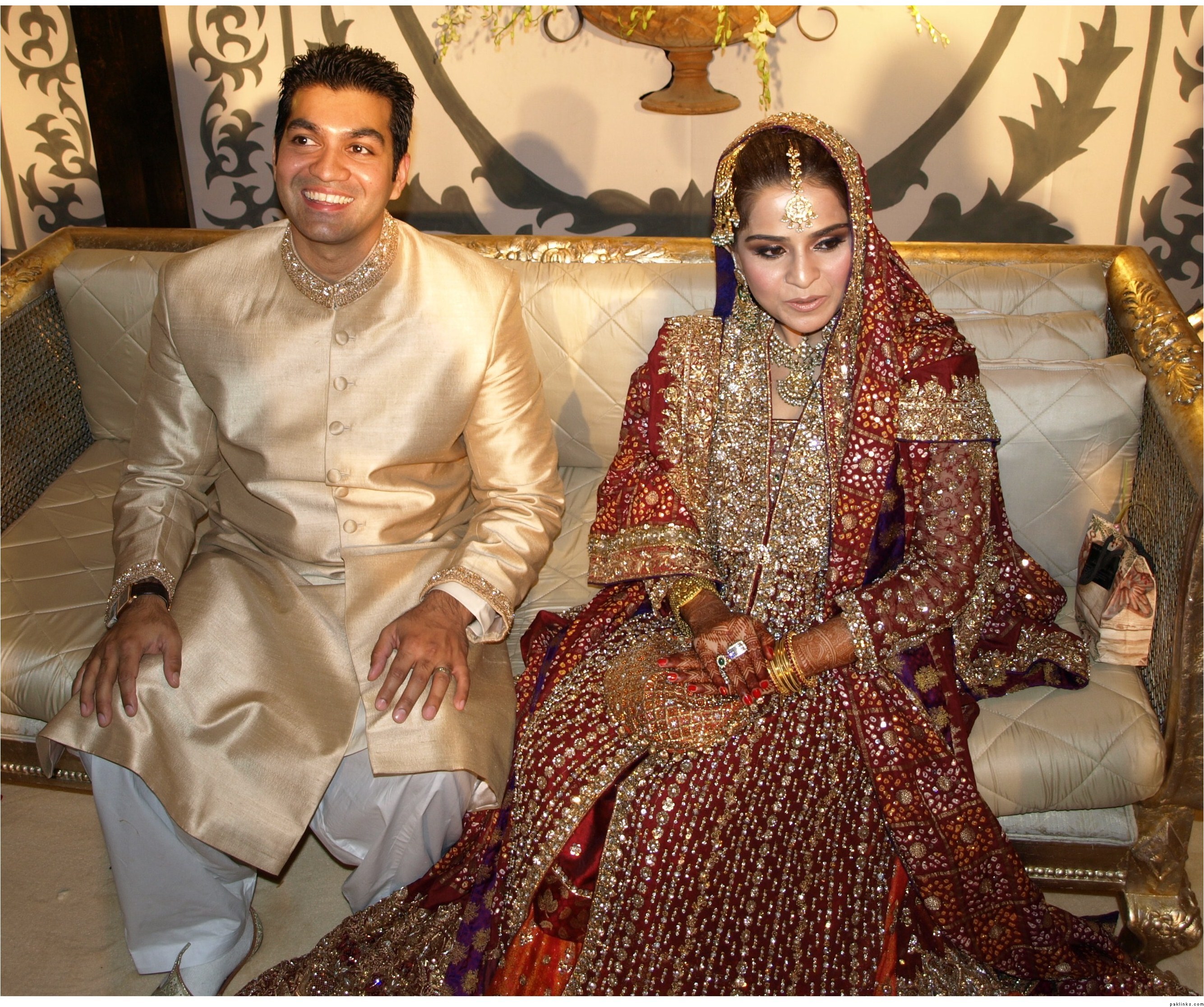 Okay, now you guys ate being ridiculous. It is heavy but still looks like a work of art and couture. You can TELL the kaam on that is amazing. The only thing I don't like on the bride is that she wore her jhoomar on the right side. It looks off. And the nailpolish.