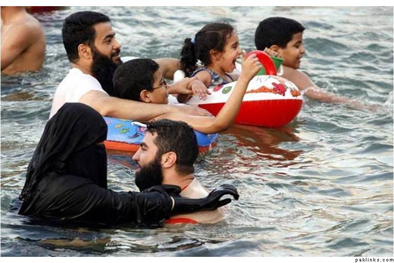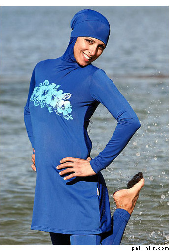 Another version of burkha-kini, tho I take the point some people may say it’s not right cos it’s shows the shape of legs..