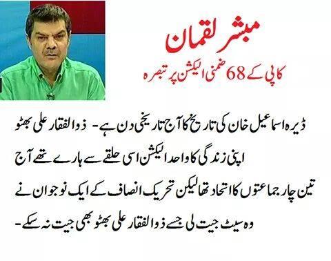 In general elections 2013, PTI candidate Humayun Khan had secure just 1,613 votes.
