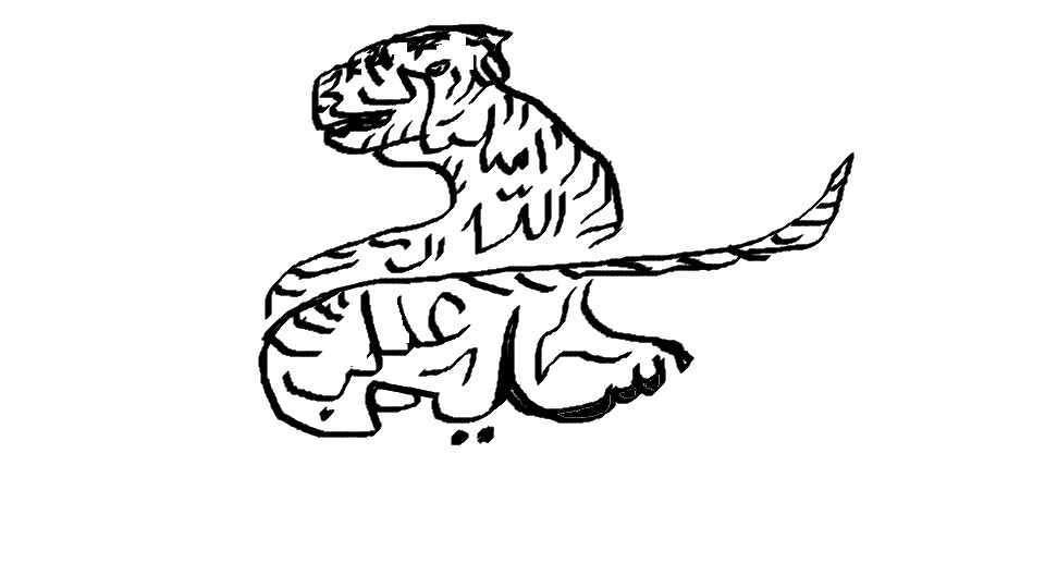 You think spot on as always. Yes the Tigers stripes in the centre are made up of the Koranic verse, while the body itself is my name… okay it’s very bombastic but hell it’s still very awe inspiring and I have used that symbol for years…