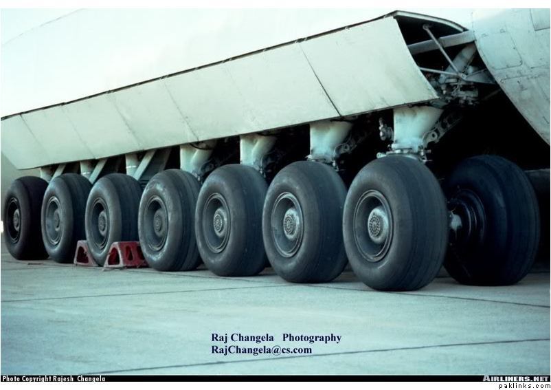 -antonov 124 has 6 set of landing gears under the wings while antonov 225 has 7