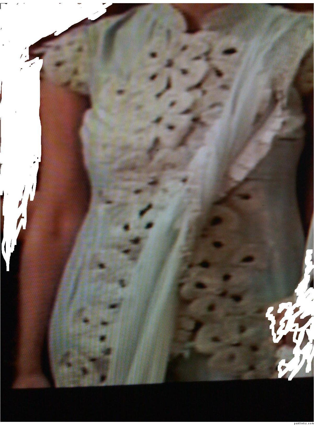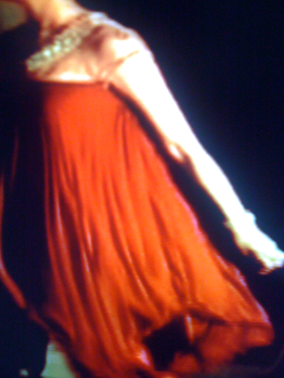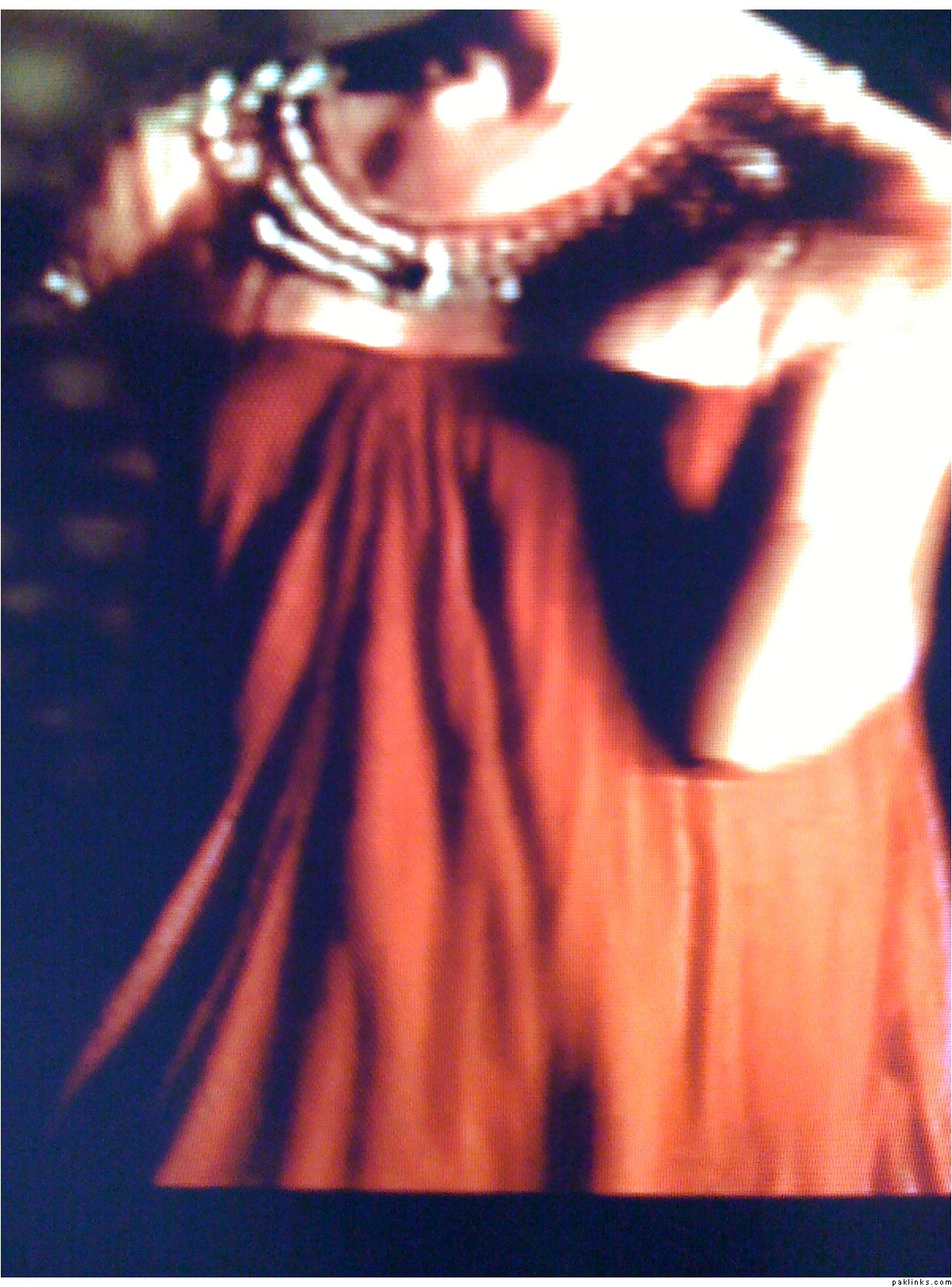 I know its not clear....i captured those pics from a video....let me give a brief description of the dress...there's artificial jewellery work near the neck and and assym hem line and it is maroon colour...i am guessing the fabric is georgette or shiffon