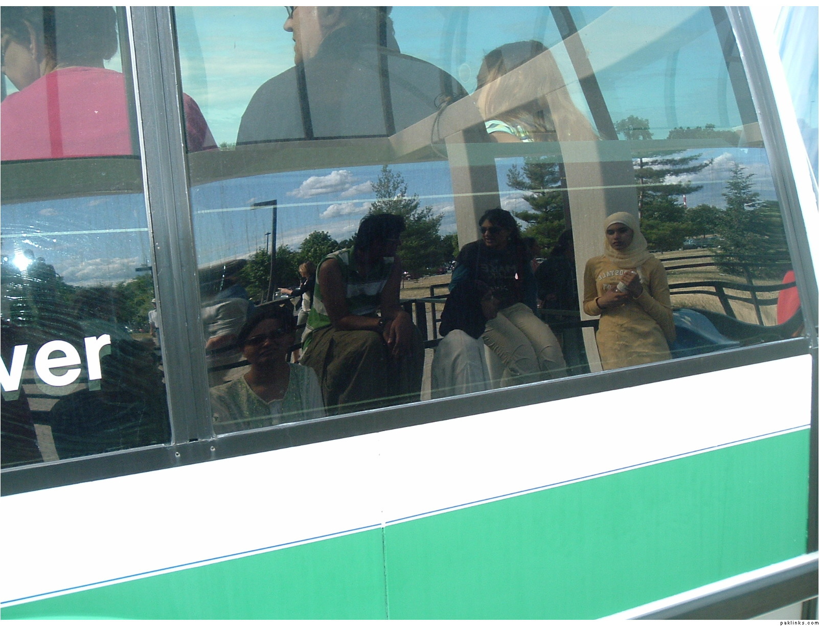 after that, we went to niagra falls, parked our cars in the only available spot (shuttle lot), this is a reflection off the peopleās mover 2car bus: (good work jay)