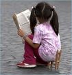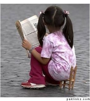 Reading like an adult, sitting like a child.