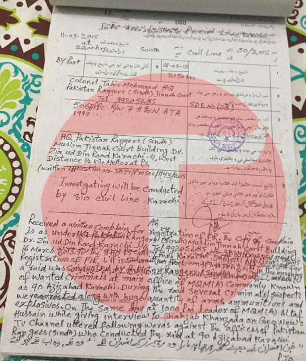 On Tuesday, a top Ranger official registered a case against Altaf Hussain at Civil Lines Police Station in Karachi for threatening Rangers after they raided MQM Headquarter Nine-Zero.Altaf Hussain in an interview with the private channel condemned the raid and made what the paramilitary Rangers force said were veiled threats against them.“The officers that raided my house, they belonged to the Rangers. They were, and they are now, the past,” he said according to an official complaint registered by the paramilitary force.According to sources in the law department of Sindh, there were 72 cases against Hussain including 31 of murder and a total of 3,800 cases against MQM before 2007. These cases were withdrawn by the government of former president Gen. Rtd. Pervez Musharraf under the National Reconciliation Ordinance (NRO) in 2007.However, the party claims that all the cases against Hussain were disposed off by the courts of law after due legal course.