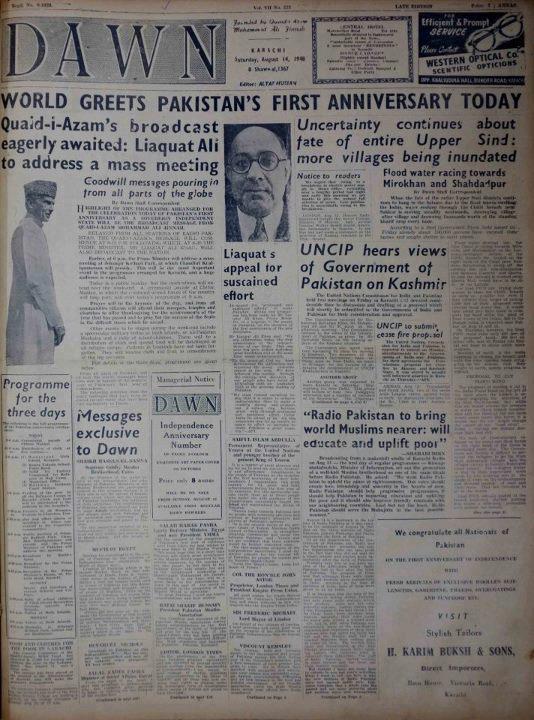 Dawn news Paper on August 14th when Pakistan celebrated its first birthday