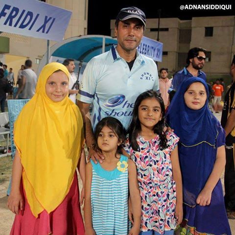 Adnan Siddiqui with his daughters (in centre) & Afridi’s daughters Ansha, Aqsa