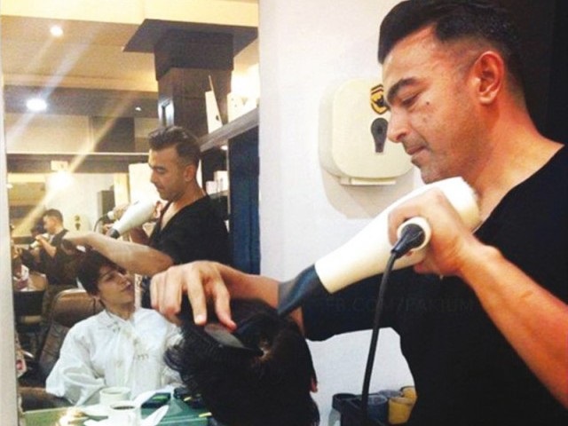 Yeh naai kiss aurat kay baal kaaT raha hai ?
