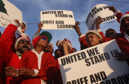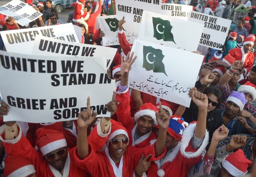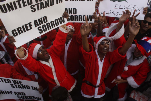 Just five days after the massacre, Pakistani Christians were not going to let the Taliban have the last word. Dressed in Santa Claus outfits and holding signs that read “United we stand in grief and sorrow,” dozens gathered in Karachi, Pakistan to protest the attack.