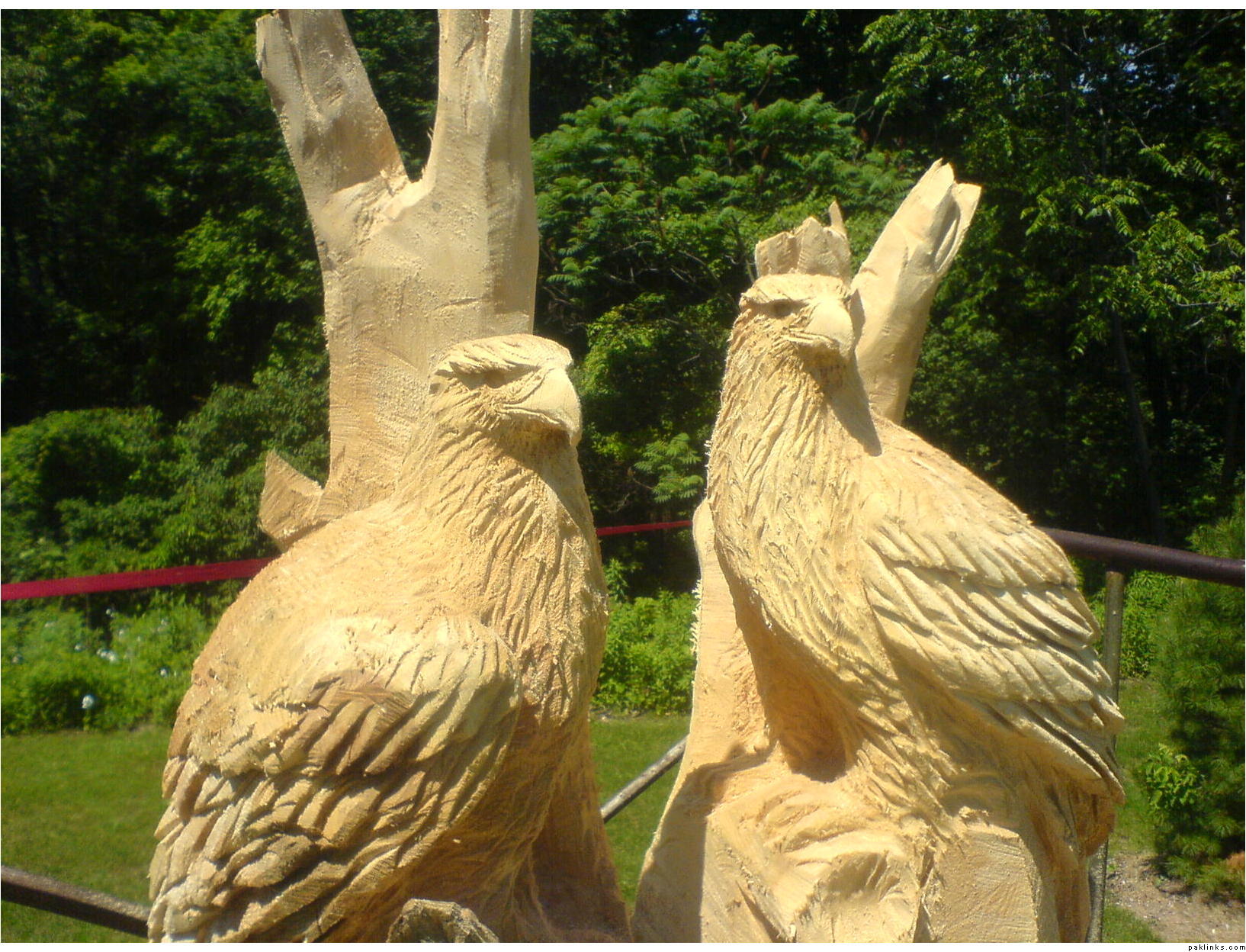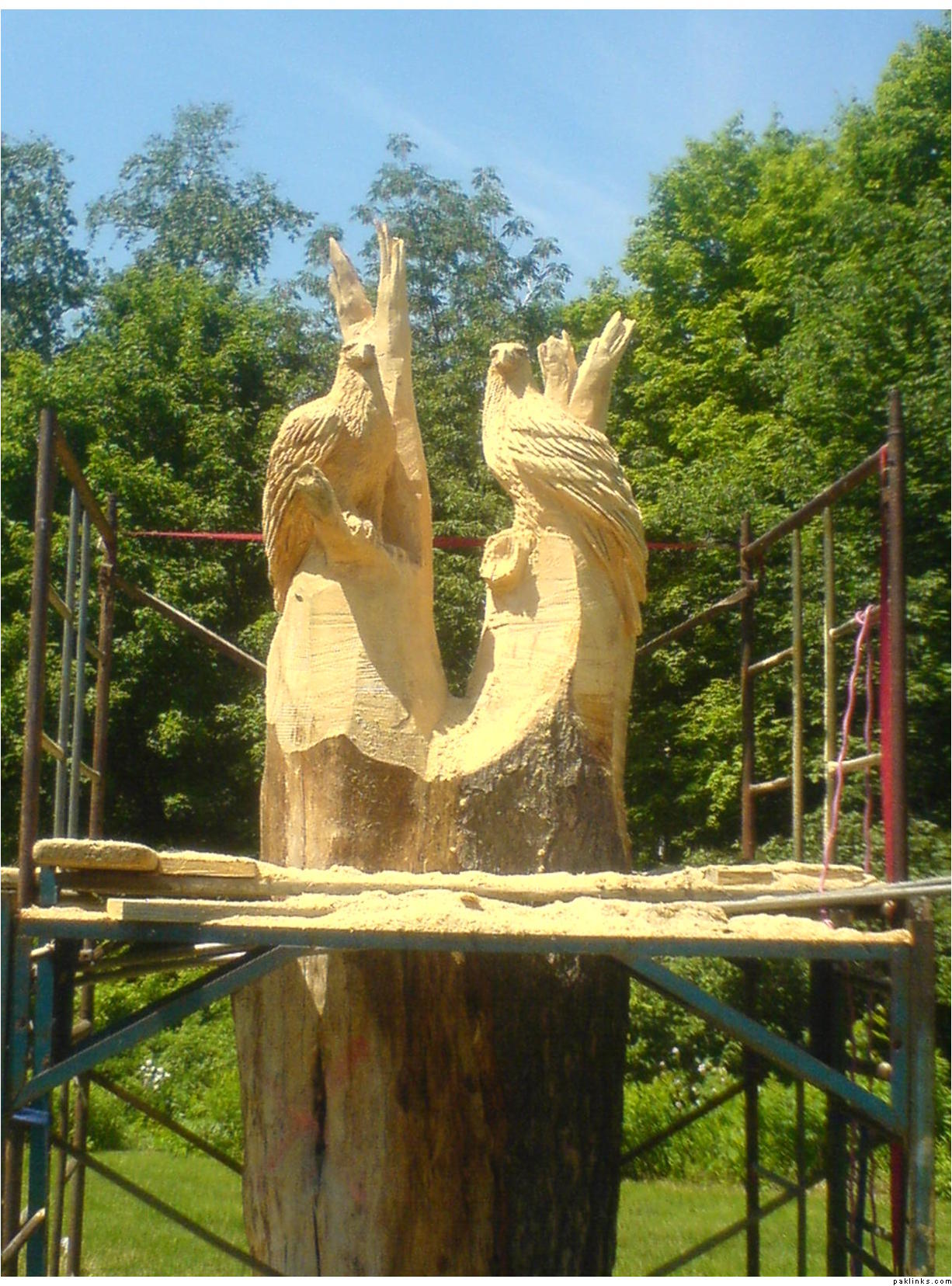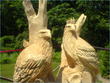 These birds were made by chain saw. I saw the guy doing it.