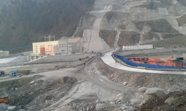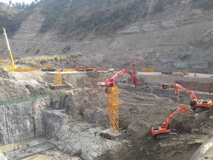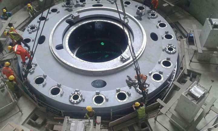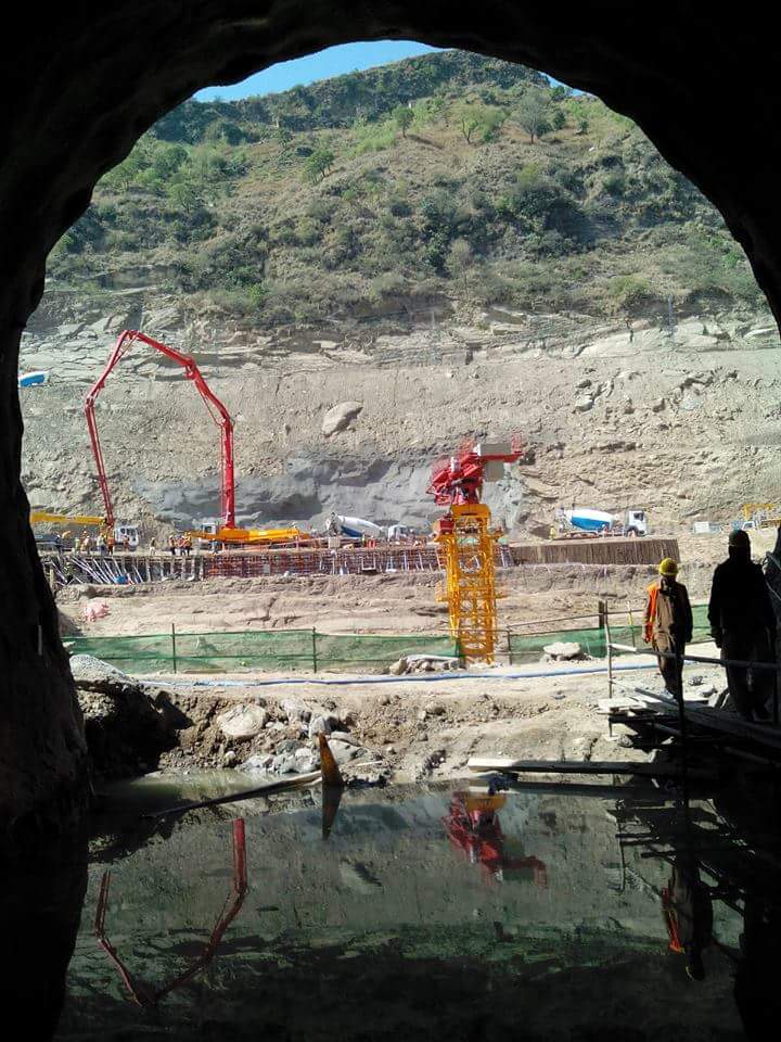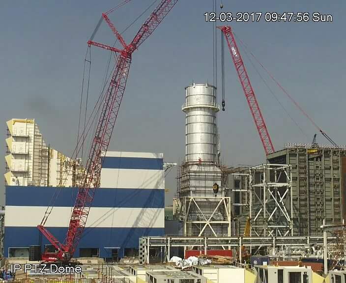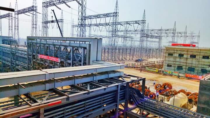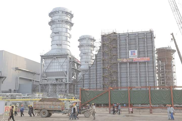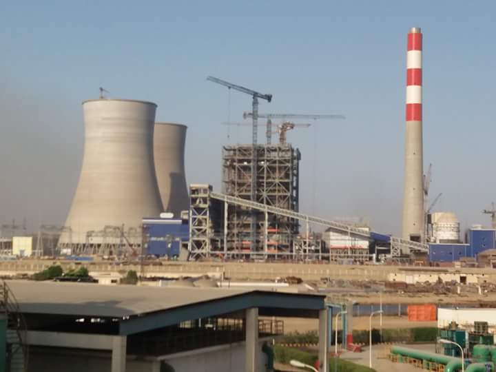 Chinese laborers work at the under construction power plant.