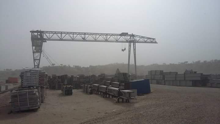 A kilometer from the living compounds, a massive square terraced hole is being carved out of the dust. Yellow Chinese dump trucks made by Shaanxi Tonly Heavy Industries Co.line up at the bottom to be filled with dirt by hydraulic excavators.