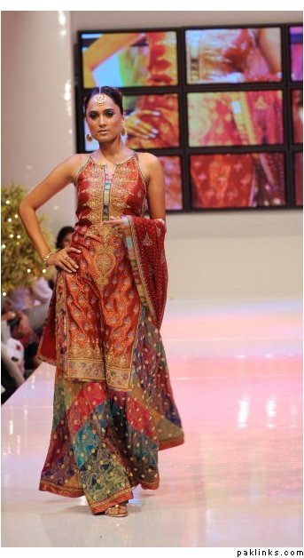 what you could do is ...instead of having seams....u could get the work done were the color changes...so the fabric is one piece ...going from dark to light.... and the chuta pati part is the kaam along the edges of the colors...that makes it look like strips sewn togeather. i think otherwise it would be a bit too much...with the color changing ..then the jamawar with the booties on it...and then the work on it....