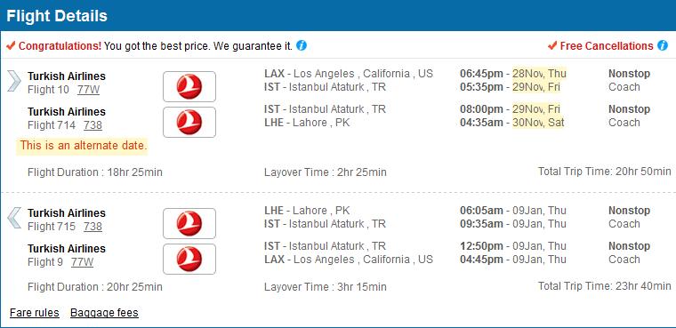 I am looking for cheap flight from Los Angeles/San Diego to Lahore after Thanksgiving holidays...for about a month (would like to return by new year) for two adults and a kid.