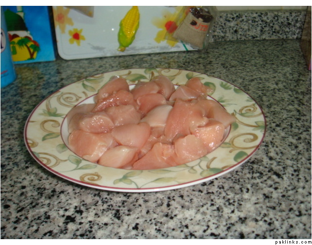 take about 500gm boneless chicken and cut them into bite size pieces