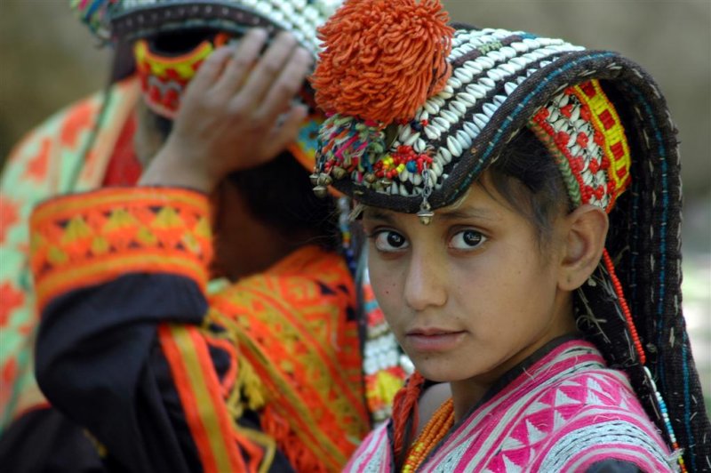 Peshawar: Surrounded by the mountains of the Hindu Kush live a small group of people called the Kalash. They have their own language, religion and dress. There are many theories about how they came to inhabit their lofty valleys. Some say that they are the descendents tribes who intermarried with followers of Alexander the Great while others discern traces of Greek Civilization and physical characteristics among the Kalash. Their origin is still not clear but many foreigners relate to them as a “little Island of Pagans in a Muslim World”.