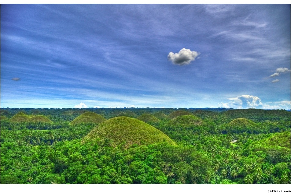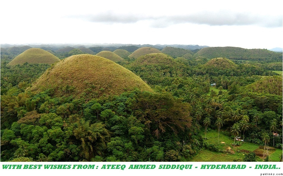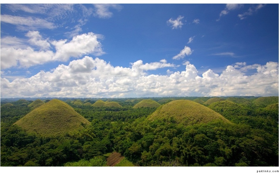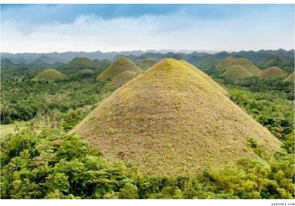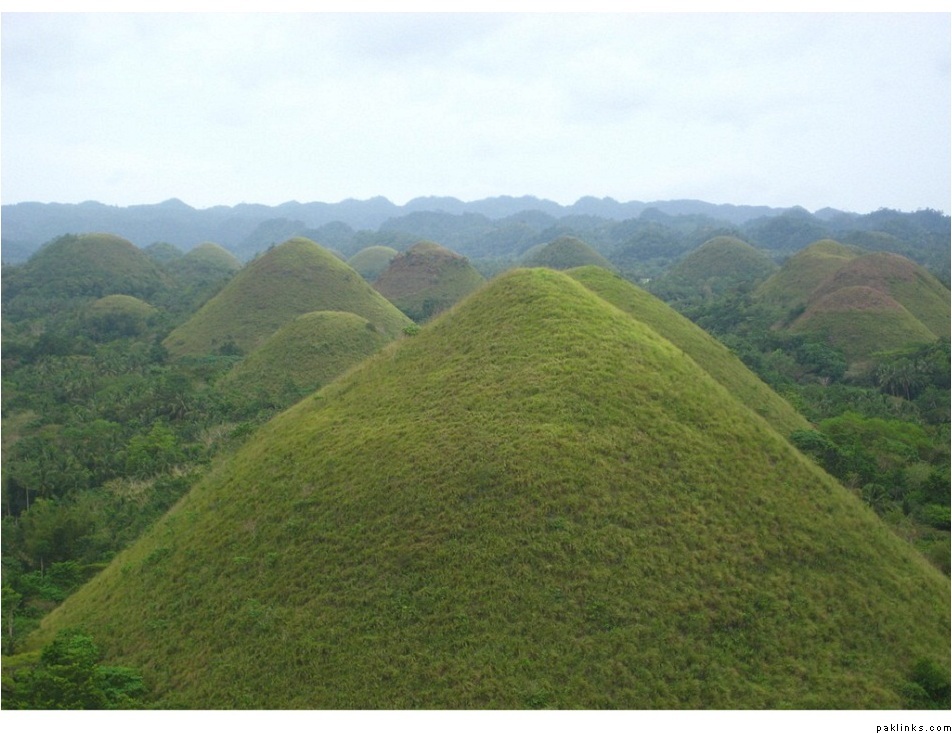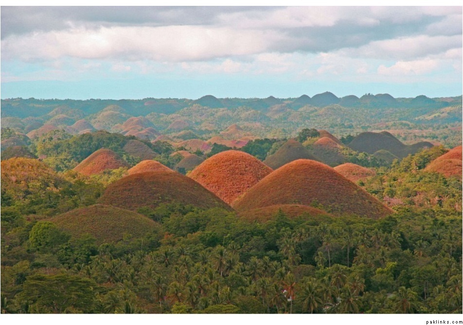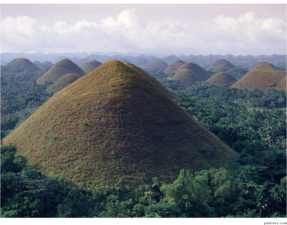 **The CHOCOLATE HILLS is an unusual geological formation in Bohol province, Philippines. They are covered in green grass that turns brown during the dry season, hence the name.