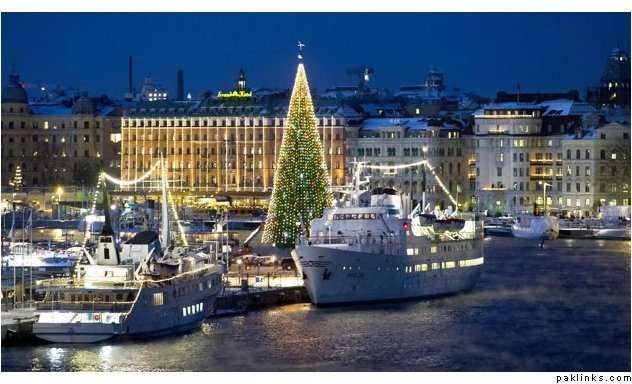 A 36-metre tall Christmas tree is lit up in central Stockholm December 2, 2012.