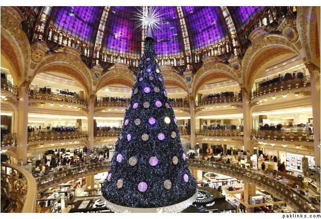 A giant Christmas tree stands in the middle of the Galeries Lafayette department store in Paris ahead of the holiday season in the French capital December 13, 2012.