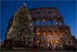 A Christmas tree stands illuminated in front of the Coliseum on December 9, 2012 in Rome, Italy
