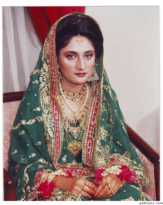 She’s wearing a farshi pajama, which was traditional in North India…based on the way it’s cut, I would guess her family is originally from Rampur. Her jewelry also looks Rampuri rather than Hyderabadi. I suspect the bride is some relative of the nawab’s family.