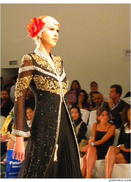 i say get a peshwaz made out of it, with long sleeves(which are see through) get kaam done all over the chest and back and then have it slightly pleated from right under the kaam. also have kaam at the bottom of the peshwaz and at the end of the sleeves, make the kaam a random color like green or baby blue, and whatever the color of the kaam, make the dupetta the same color. so an all black peshwaz with a random color dupetta.