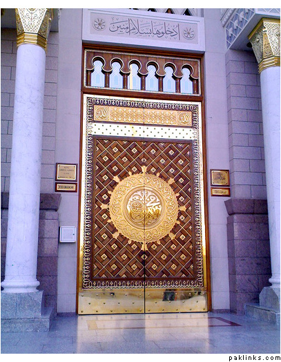 I have to say that Masjid Nabwi is a very pretty mosque and very high tech as well so it could be inspiring from an architectural perspective. Maybe the developer did search on ecletric doors and found this.
