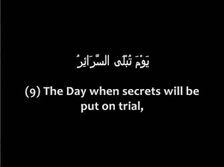 The Day when secrets will be put on trial, (9) Then man will have no power or any helper. (10) surah tariq