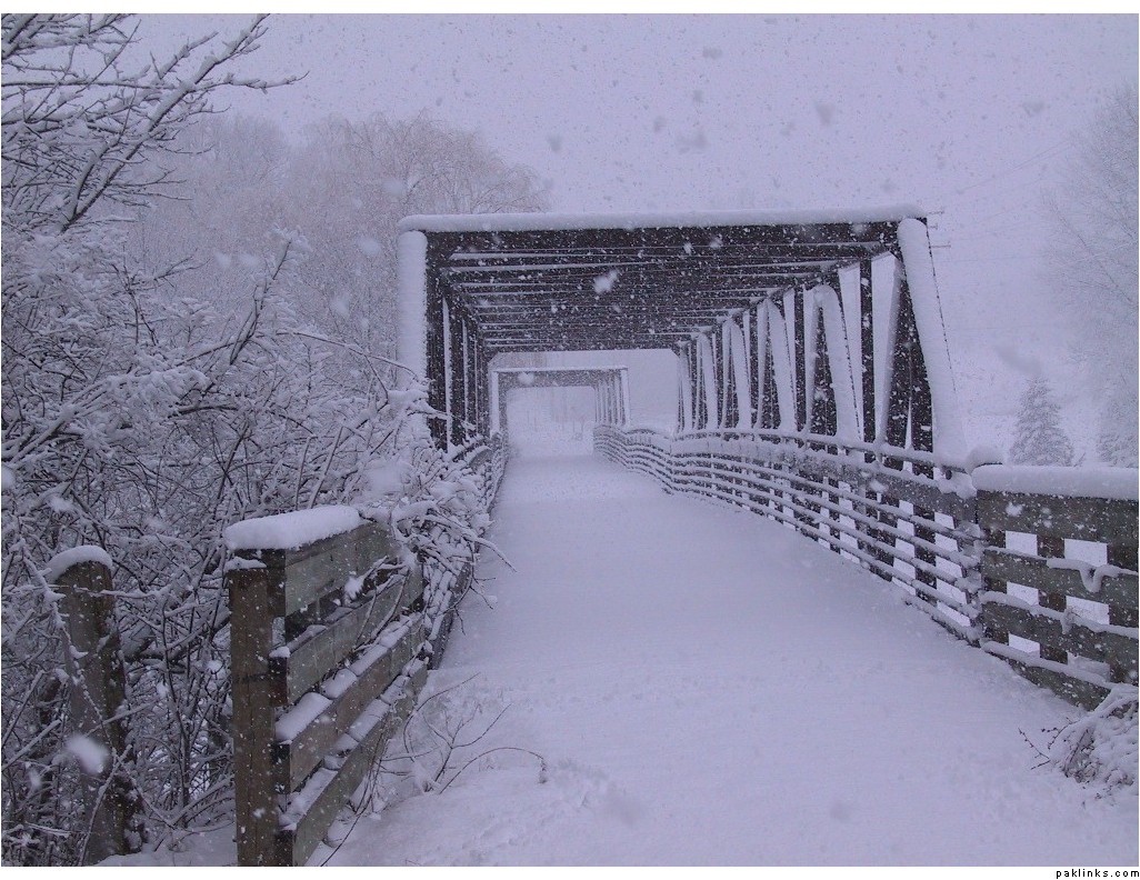 So far we’ve been lucky here in Wisconsin, just one big storm so far thgis year and no snow on the ground anymore. Here’s a picture from last year’s storm. The bridge over Milwaukee River.