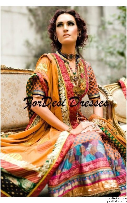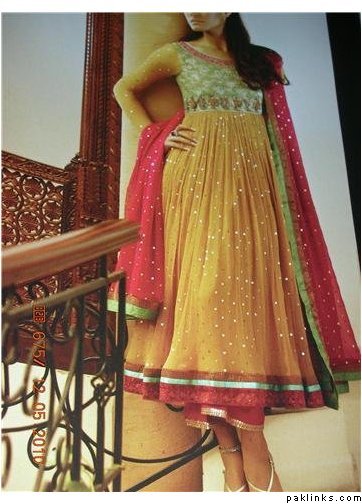 Here are 2 more inspirations I came across while checking out HSY lawn collection. I know its lawn, but just wanted to give you an idea about the various colour combo’s you could try for mehndi. Check the orange dresses in both links ![]()