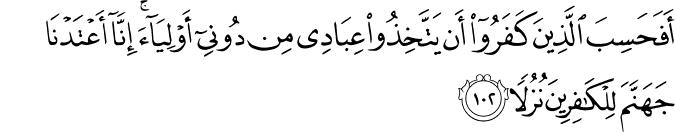 **“Do then those who disbelieve think that they can take My servants/slaves as Auliyaa’ (lords, gods, protectors, etc.) besides Me? Verily, We have prepared Hell as an entertainment for the disbelievers.”